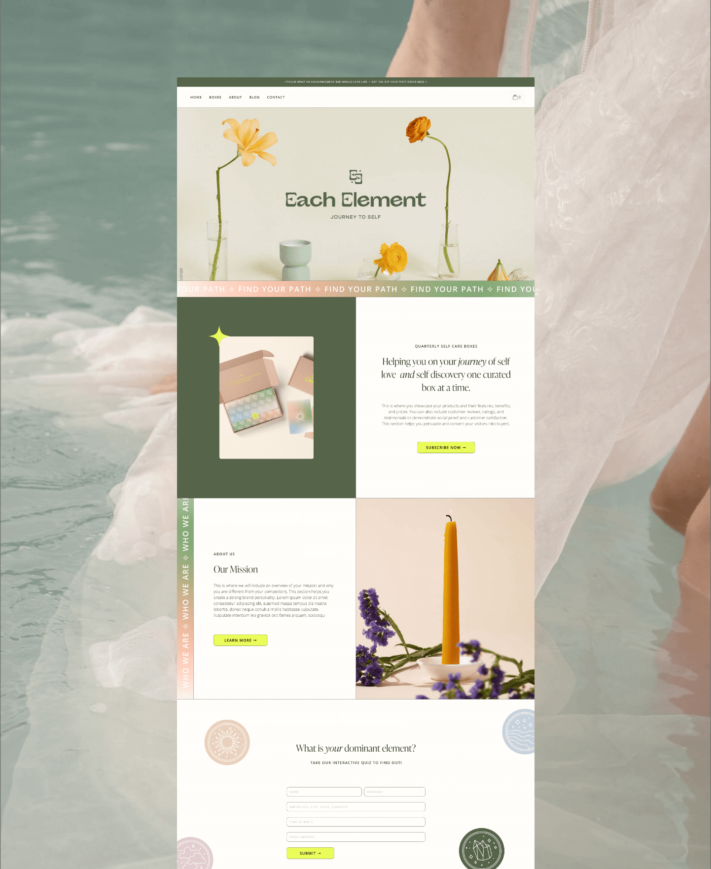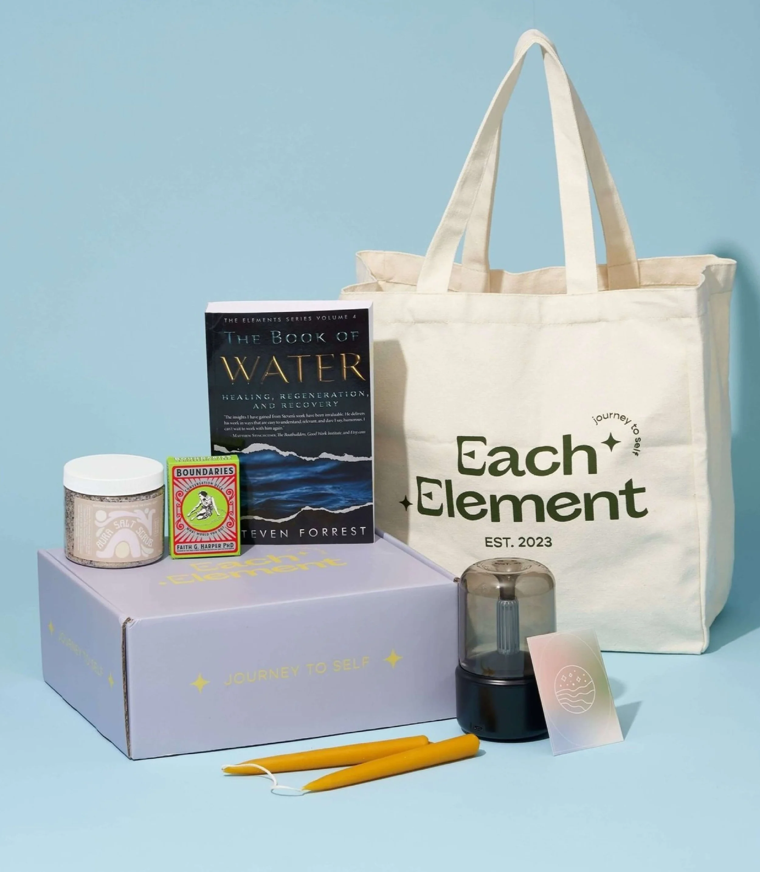 Each Element, a woman & POC-owned wellness subscription box brand, crafts self-care packages based on astrology to foster self-acceptance and love. We delivered a complete brand identity including a bespoke logo suite, curated color palette, elegant typography, business cards, and custom packaging. Additionally, we designed social media templates, a custom website, branded merch, and marketing collateral to create an immersive brand experience, promoting tranquility and self-love.