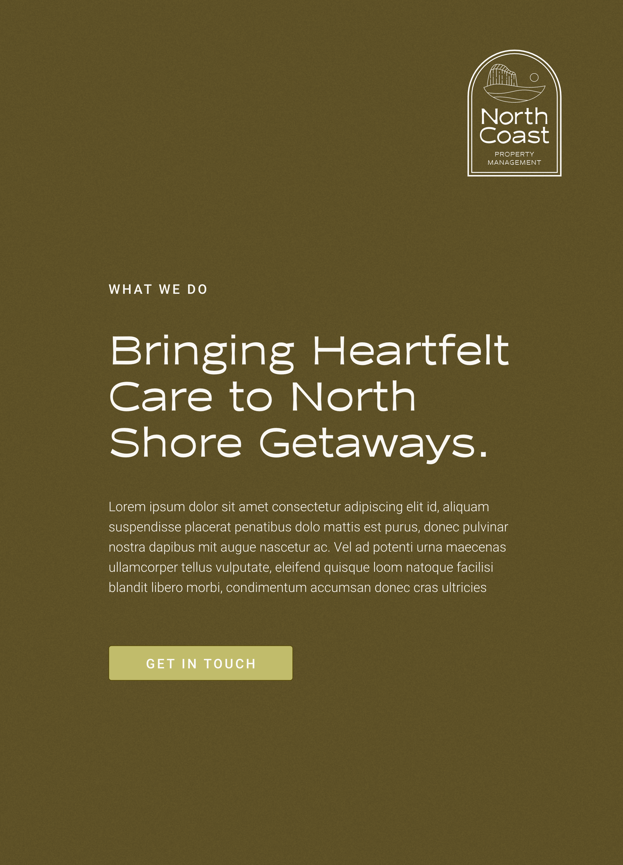 NorthCoast Property Management cherishes the adventurous spirit of the Superior North Coast Minnesota, curating short-term rentals for those seeking rest and a connection with nature. We crafted a distinguished logo suite, refined font styling, and a grounding color palette to mirror their dedication to seamless experiences and the Lake’s serene energy.